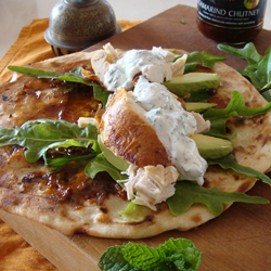 Spread 1 dessertspoon of chutney over the naan, then pile on lettuce, cucumber & avocado. Top with a generous amount of chicken, and then spoon over the yoghurt sauce.